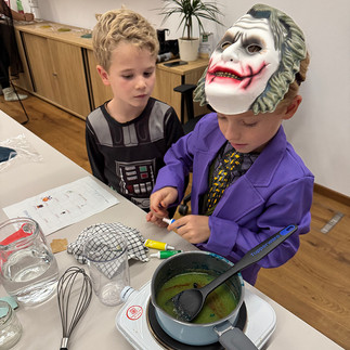 Spiel, Spaß und Spannung: Danach ging es weiter mit unterschiedlichen Grusel-Stationen, natürlich alle passend zum Thema Halloween. Egal ob beim Basteln von Mumienlichter aus alten Gurkengläsern, beim Bälle werfen in den Hexenkessel oder beim Greifen in die geheimnisvolle Kiste – es war für alle etwas dabei. Besonders die Kreativen unter den Kindern wurden beim Basteln von angsteinflößenden Halloween-Masken, unheimlichen Schleckergeistern und düsteren Mandarinen-Tieren gefordert.