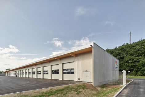 In Stoob wurde ein neuer, zentraler Stützpunkt für die Straßenmeisterei Burgenland errichtet. Der neue Standort umfasst ein Verwaltungsgebäude sowie eine Werkshalle mit Zentralmagazin, Werkstätte und Prüfstelle für LKWs. Des Weiteren wurden überdachte Stellplätze für den Fuhrpark, beheizte und unbeheizte Garagen, eine Tankstelle, Salzsilos inkl. Solemischanlage und Waschboxen auf dem 25.440 m² großen Grundstück realisiert. Insgesamt bietet der Stützpunkt ca. 110 Mitarbeiter:innen Platz.